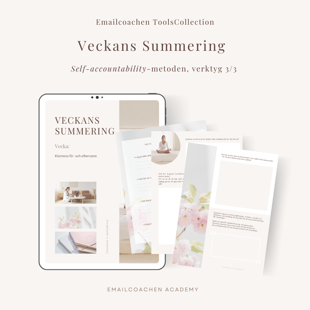 Med det tredje verktyget i Self-Accountability-metoden - Veckans Summering - hjälper du din klient att knyta ihop veckan och landa i insikter, lärdomar och klarhet.