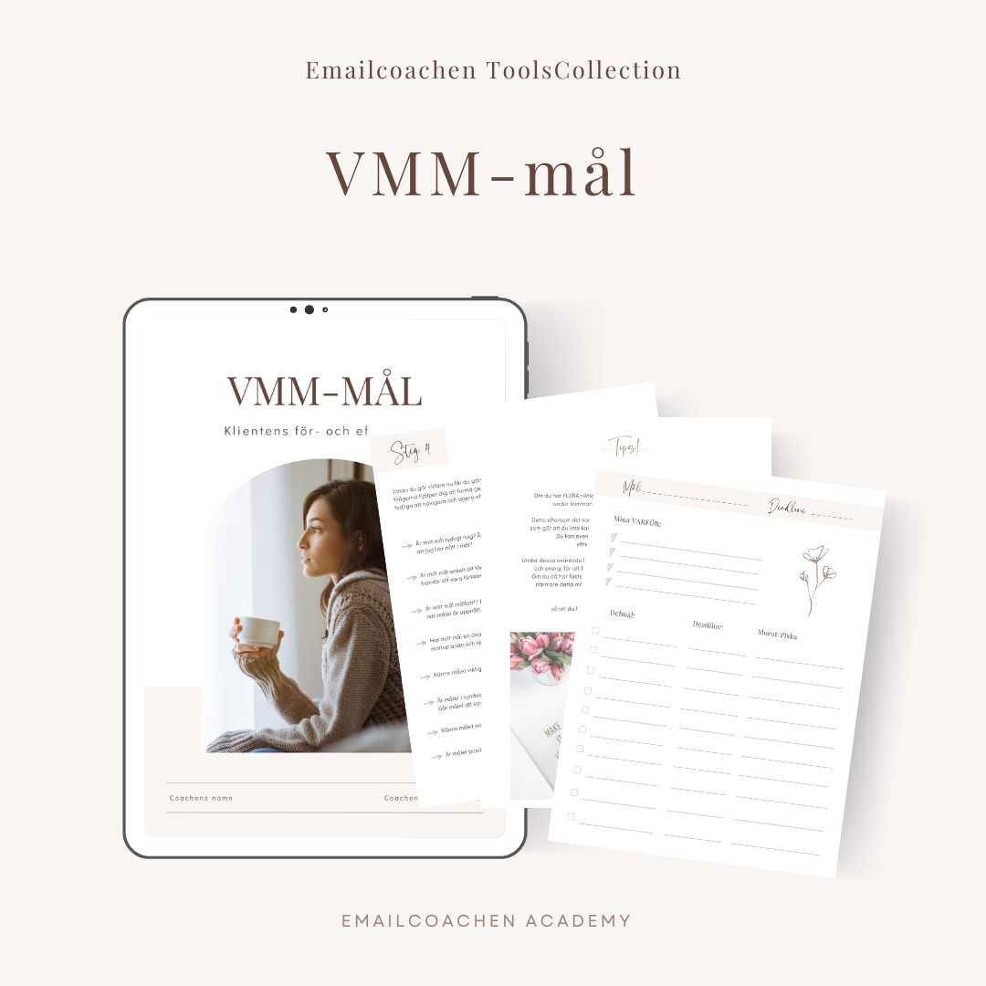 VMM-mål är en metod som hjälper din klient att nå sina mål snabbare och med mindre stress. Genom att sätta mål som är Viktiga, Meningsfulla och Motiverande skapas både riktning och drivkraft – på ett hållbart sätt.